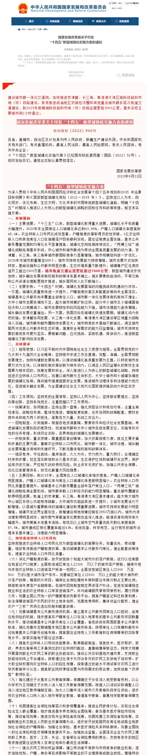 加快推进京津冀、长三角、粤港澳大湾区城际铁路和市域(郊)铁路建设!“十四五”新型城镇化实施方案全文印发