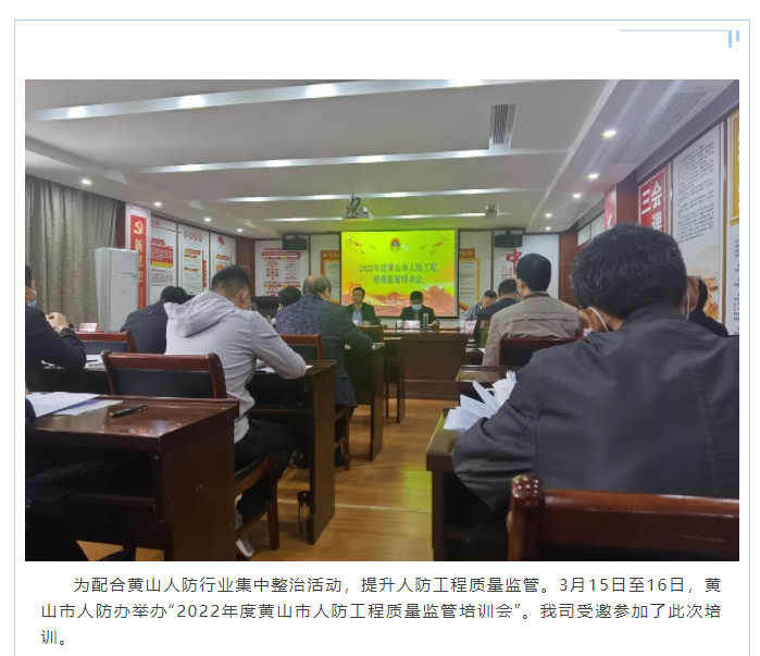 我司参加黄山市人防办举办的“2022年度黄山市人防工程质量监管培训会”