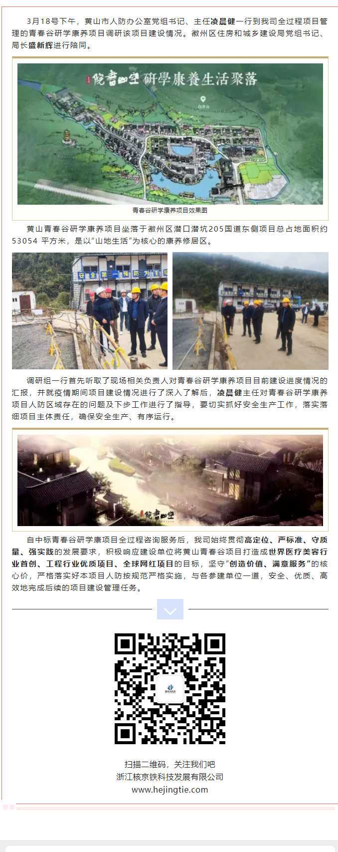 黄山市人防办公室党组书记、主任凌晨健一行调研我司全过程项目管理的青春谷项目