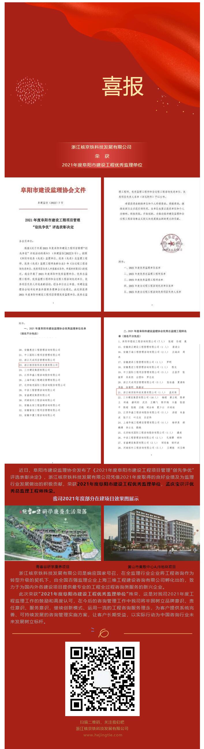 喜 报 |我司荣获2021年度阜阳市建设工程优秀监理单位